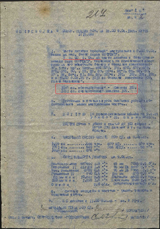 1023-й стрелковый ордена Кутузова полк 307-й стрелковой дивизии».