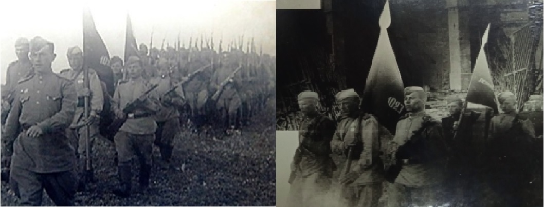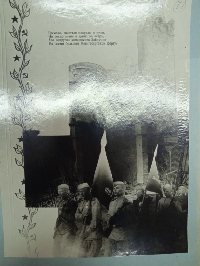 Пробитое пулями, окроплённое кровью знамя пионеров наравне с боевым знаменем части и дальше вело в бой солдат, сражавшихся за Родину. С ним освобождали земли Курской и Брянской областей, Польши и Белоруссии. Славный боевой путь знамя завершило в мае 1945 года в Кёнигсберге – самой крупной и хорошо укреплённой цитадели Третьего рейха. Этот город был колыбелью немецкого воинского духа, столицей Тевтонского ордена, откуда немцы начинали захватнические войны. Немцы окружили его фортами, мощными стенами, дотами и другими укреплениями. Гитлер называл Кёнигсберг «неприступным бастионом немецкого духа». Но он снова ошибся. Город-крепость был взят советскими войсками за четыре дня. Именно там в последний раз пошли в атаку воины 1032-го стрелкового полка, неся впереди два знамени. Под градом пуль красноармеец Сергей Зайнулин водрузил их над Кёнигсбергским фортом.