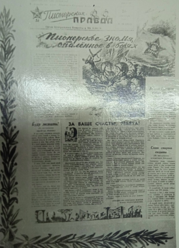 Эта история известна очень и очень немногим. На слуху другой подобный исторический факт: первое боевое знамя легендарного партизанского отряда Сидора Артемьевича Ковпака было сделано из пионерского знамени, которое нашли в захваченном немецком танке. Шёл конец октября 1941 года, и, конечно, никаких знаков-символов у небольшой группы народных мстителей ещё не было. А пионерское знамя, взятое немцами на оккупированной территории Советского Союза в качестве трофея, было отбито в бою. Поэтому партизаны восприняли его как святыню, которую необходимо беречь. На полотнище простыми суровыми нитками они вышили слова: «Путивльский партизанский отряд». И вот с этим символом ковпаковцы прошли тысячи огненных вёрст.