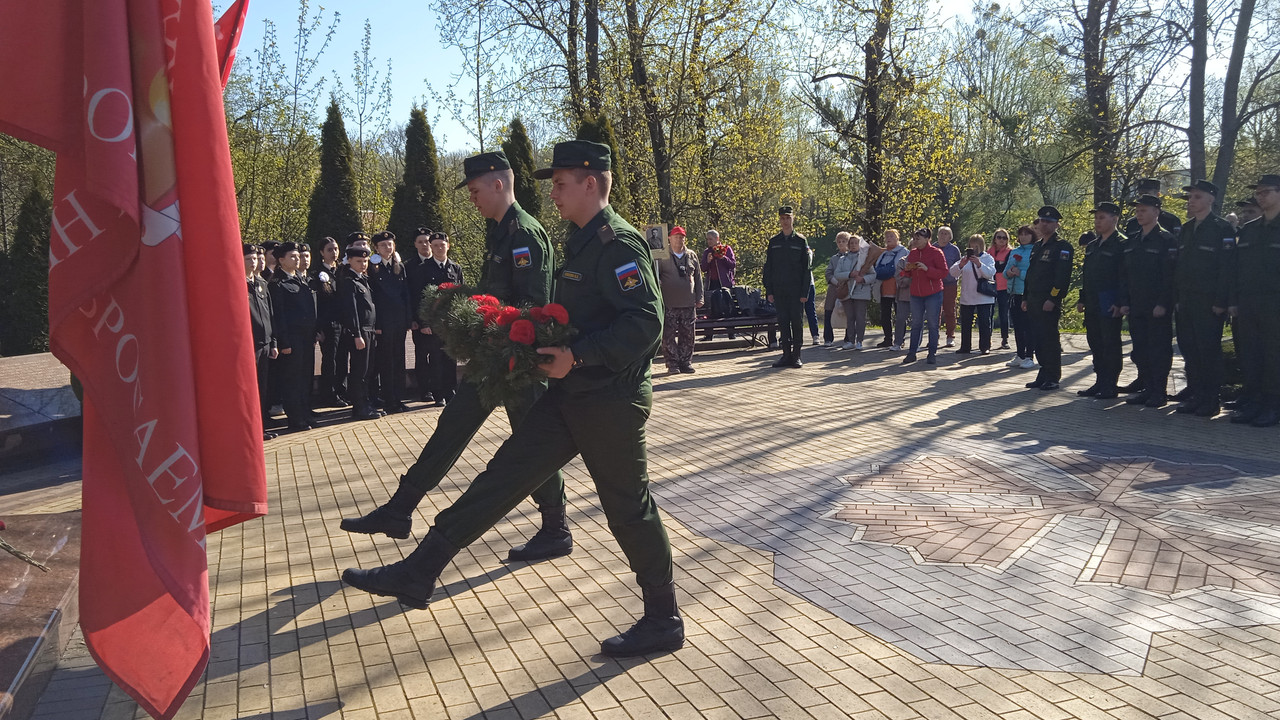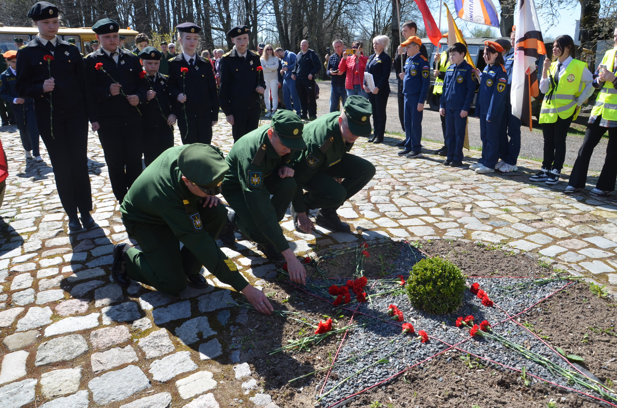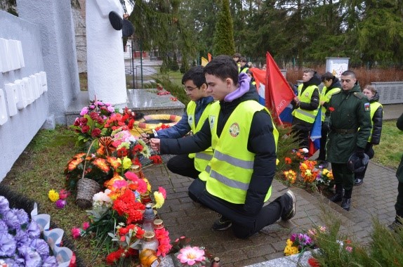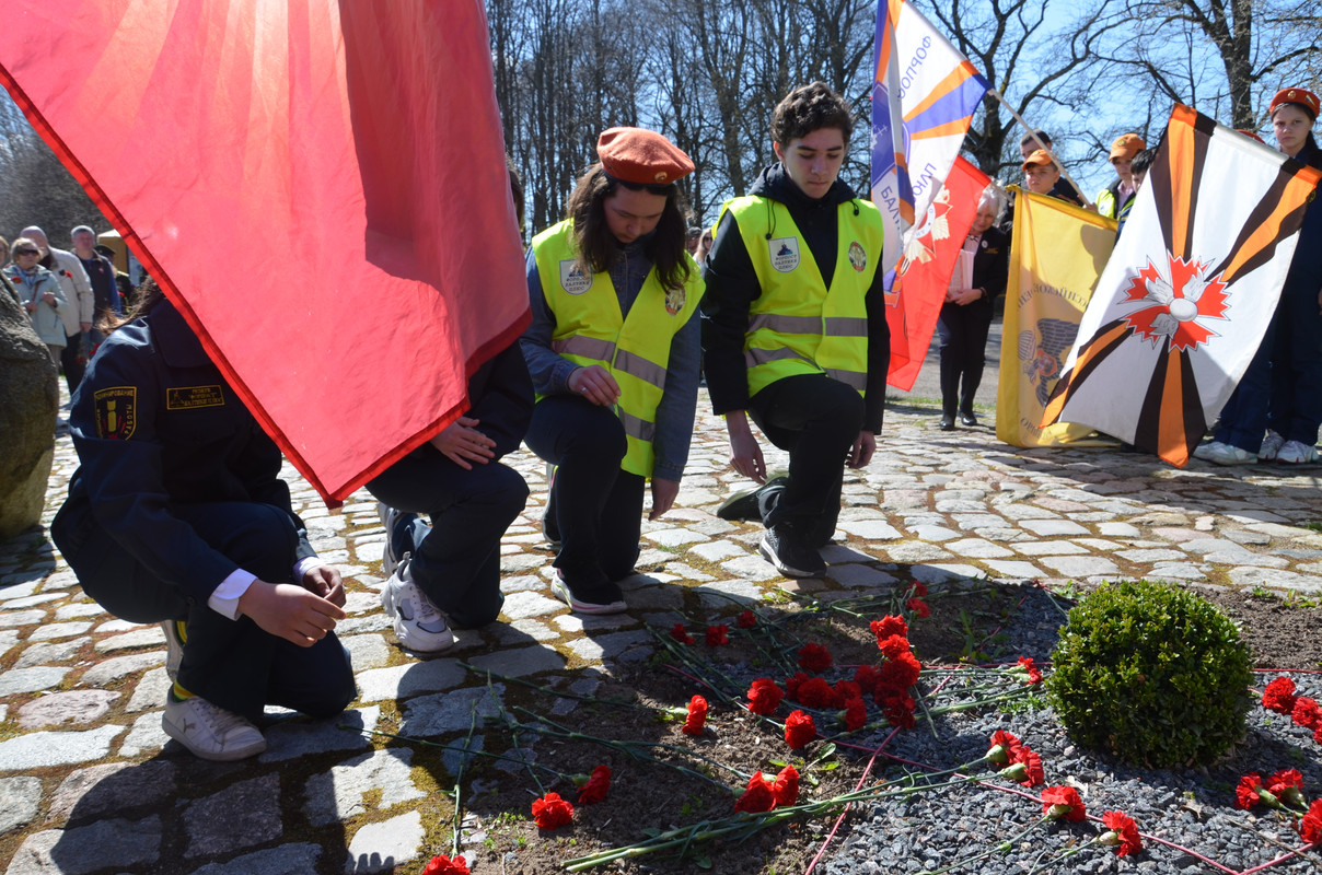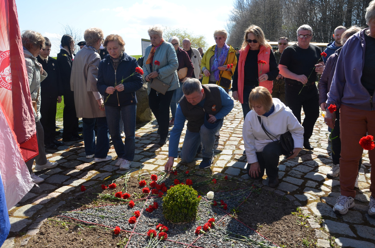10.15-10.40 Приведение в порядок и траурный митинг у Мемориала на братской могиле 6 700 воинов Красной Армии 6 Героев Советского Союза и 84 Неизвестных Солдат 39 и 43 армий, погибших в феврале-апреле 1945 г. Возложение цветов, фотографирование