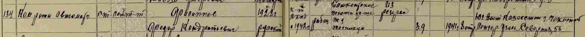 Справочно: Пензенская губерния — учреждена 12 декабря 1796 г. Включала 10 уездов: Городищенский, Инсарский, Керенский, Краснослободский, Мокшанский, Наровчатский, Нижнеломовский, Пензенский, Саранский, Чембарский. 5 марта 1797 г. была упразднена (её территория распределена между Саратовской, Тамбовской, Нижегородской и Симбирской губерниями), 9 сентября 1801 г. была восстановлена. На севере граничила с Нижегородской, востоке — Симбирской, юге — Саратовской, на западе — с Тамбовской губерниями. В 1801-1923 гг. территория Пензенской губернии оставалась в дореволюционных границах. В неё входили Городищенский, Краснослободский, Нижнеломовский, Пензенский, Беднодемьяновский, Рузаевский, Саранский и Чембарский уезды. В январе 1923 г. в состав губернии были переданы Спасский уезд, часть Темниковского уезда. 16 июля 1928 г. территория губернии была разделена между Кузнецким, Мордовским, Пензенским и Сызранским округами Средневолжской области.Семья: Отец – Фядин Матвей – рабочий, плотник по найму. Проживал вместе с женой (матерью Андрея Матвеевича) до 1917 г. в с. Ехово Краснослободского уезда Пензенской губернии. В 1917 г. семья Фядиных переехала на новое место жительство, в г. Кустагай. С 1917 г. по 1921 г. Фядины проживали в г. Кустанае