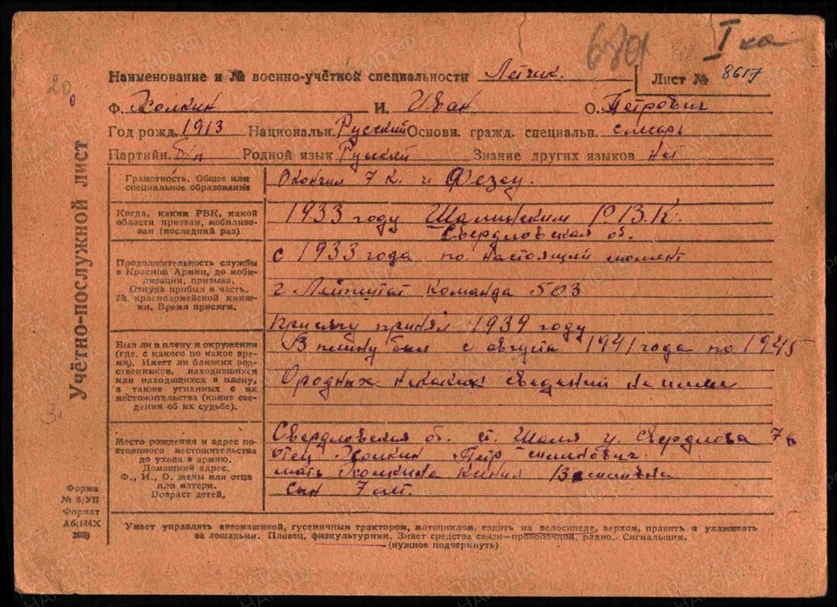 Дата и место призыва 11.06.1941