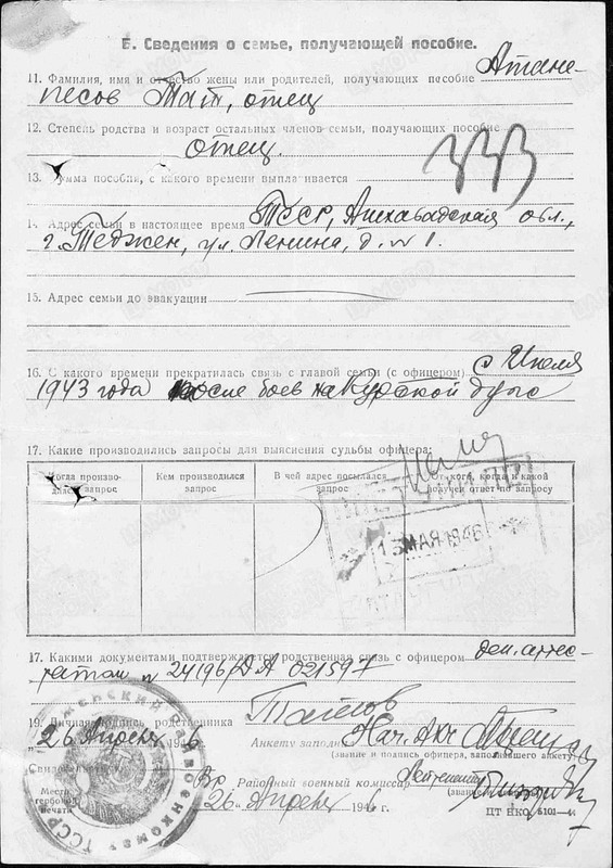 Дата и место призыва: __.__.1942 Бахарденский РВК, Туркменская ССР, Ашхабадская обл., Бахарденский р-н