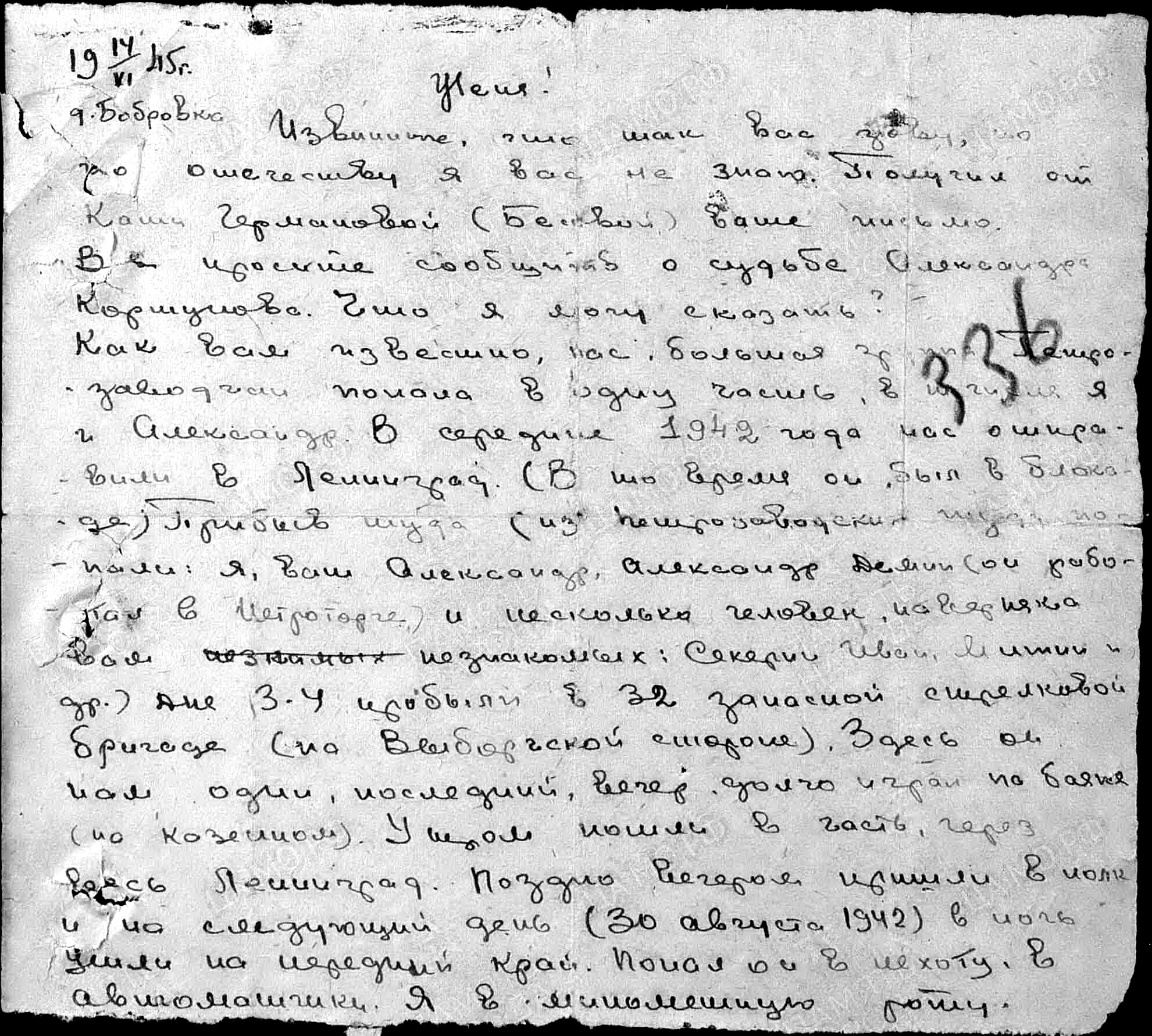 02.09.1942 https://pamyat-naroda.ru/heroes/isp-chelovek_spisok7778128/?backurl=%2Fheroes%2F%3Flast_name%3D%D0%9A%D0%BE%D1%80%D1%88%D1%83%D0%BD%D0%BE%D0%B2%26group%3Dall%26types%3Dpamyat_commander%3Anagrady_nagrad_doc%3Anagrady_uchet_kartoteka%3Anagrady_ubilein_kartoteka%3Apdv_kart_in%3Apdv_kart_in_inostranec%3Apamyat_voenkomat%3Apotery_vpp%3Apamyat_zsp_parts%3Akld_ran%3Akld_bolezn%3Akld_polit%3Akld_upk%3Akld_vmf%3Akld_partizan%3Apotery_doneseniya_o_poteryah%3Apotery_gospitali%3Apotery_utochenie_poter%3Apotery_spiski_zahoroneniy%3Apotery_voennoplen%3Apotery_iskluchenie_iz_spiskov%3Apotery_kartoteki%3Apotery_rvk_extra%3Apotery_isp_extra%3Asame_doroga%3Asame_rvk%3Asame_guk%3Apotery_knigi_pamyati%26page%3D9%26grouppersons%3D1%26first_name%3D%D0%90%D0%BB%D0%B5%D0%BA%D1%81%D0%B0%D0%BD%D0%B4%D1%80%26middle_name%3D%D0%9F%D0%B5%D1%82%D1%80%D0%BE%D0%B2%D0%B8%D1%87&Причина выбытия не указана.Соседняя,