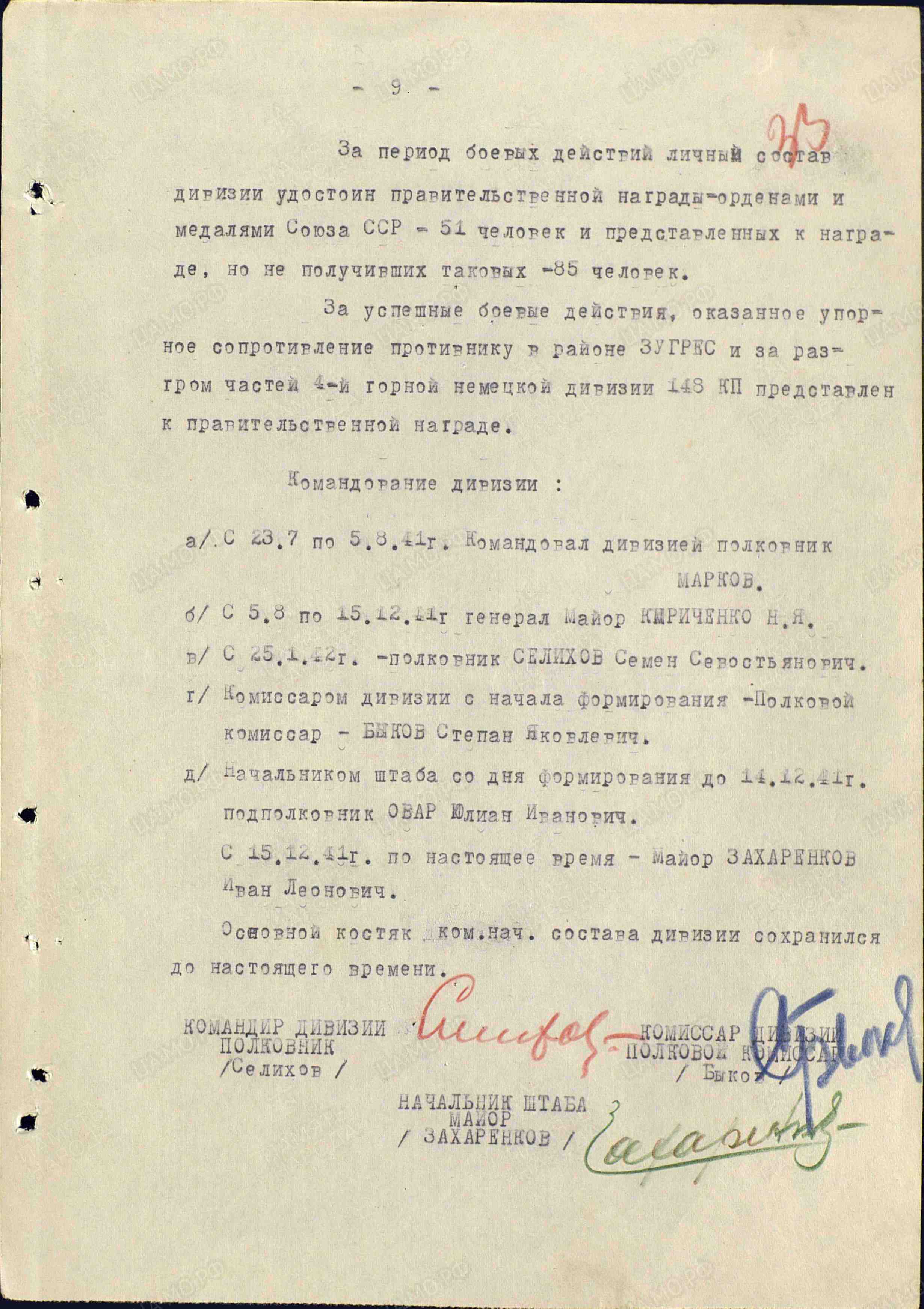 полковник С.С. Селихов (12.1.1942-11.5.1942)