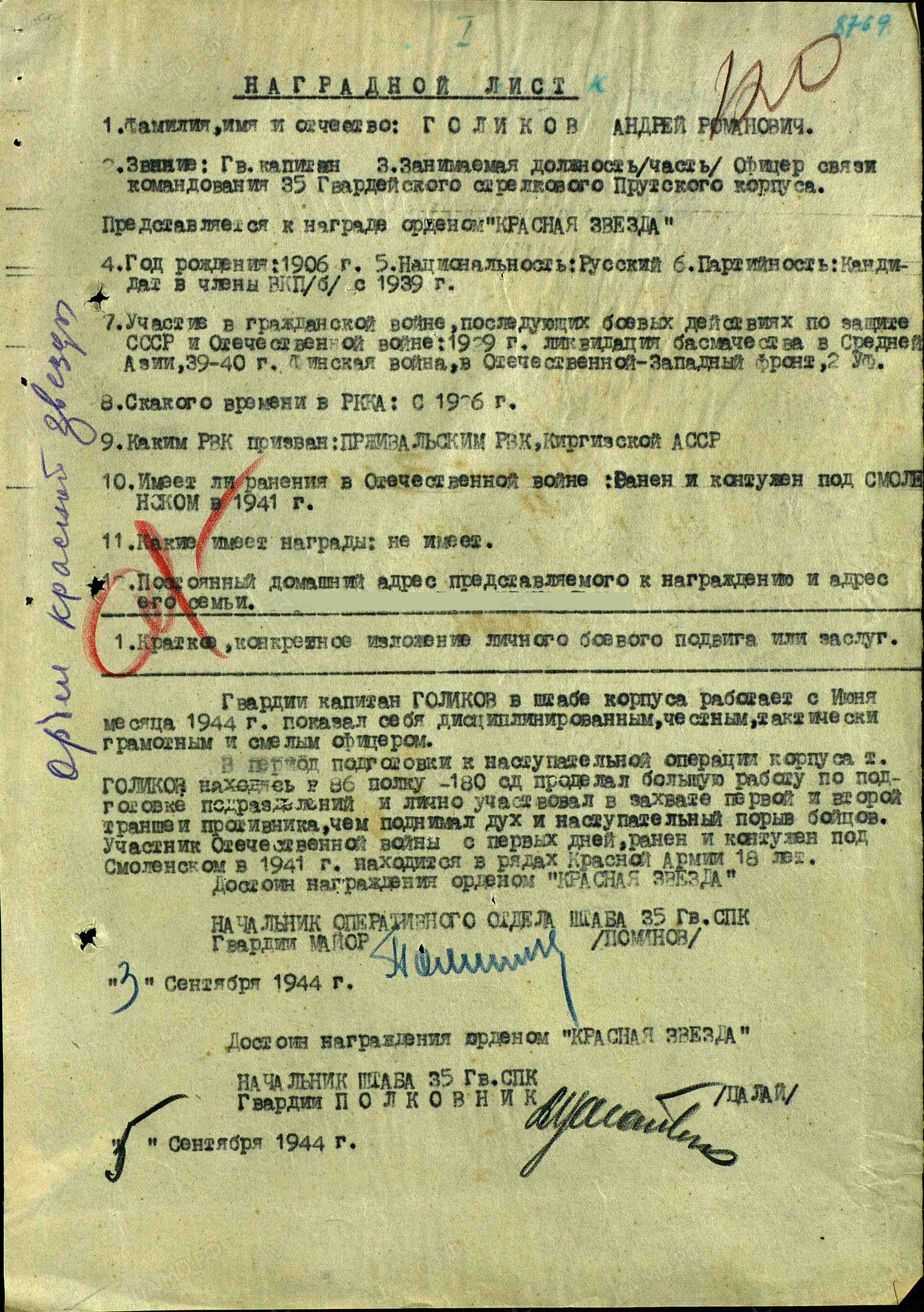 - орденом Красного Знамени РСФСР (__.__.1920);